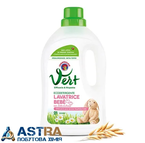 Звичайні пральні засоби можуть містити агресивні компоненти, які викликають подразнення ніжної дитячої шкіри. Гель Vert Bebe поєднує ефективне очищення з натуральним доглядом.