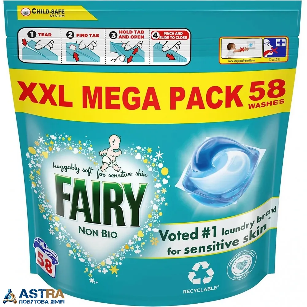Капсули для прання дитячої білизни Fairy Non-Bio, 58 шт