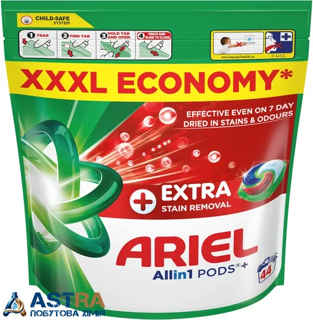 Купити капсули для прання універсальні Ariel Extra, 44 шт ви можете в інтернет-магазині ASTRA. Ми пропонуємо тільки оригінальну продукцію (виробництво Франція) та забезпечуємо швидку доставку по всій Україні. Обирайте Ariel - інноваційний європейський підхід до прання та неперевершений захист ваших речей.