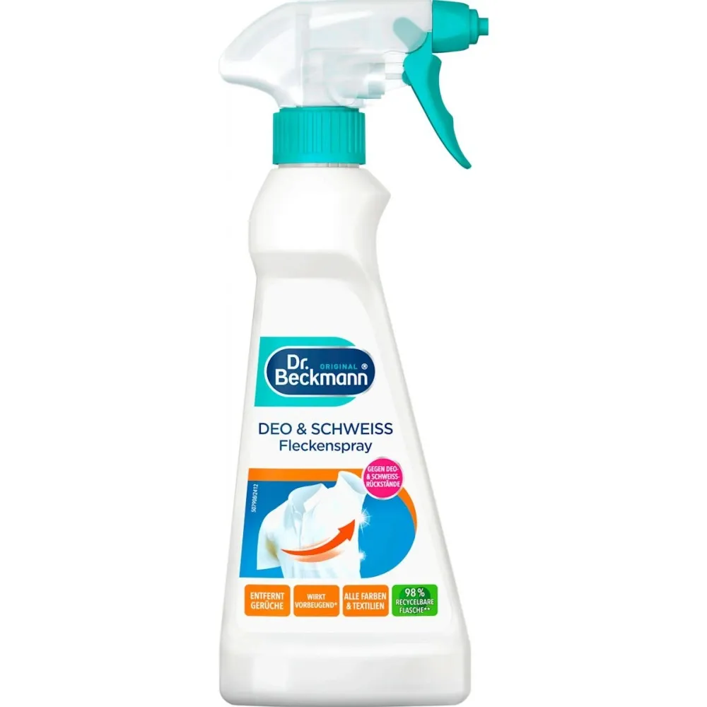 Бренд Dr. Beckmann виробляється в Німеччині відповідно до високих стандартів якості Європейського Союзу. Спеціалізована формула плямовивідника для слідів дезодоранту та поту дозволяє ефективно боротися зі складними забрудненнями, що робить цей засіб незамінним помічником у догляді за одягом для всієї родини.