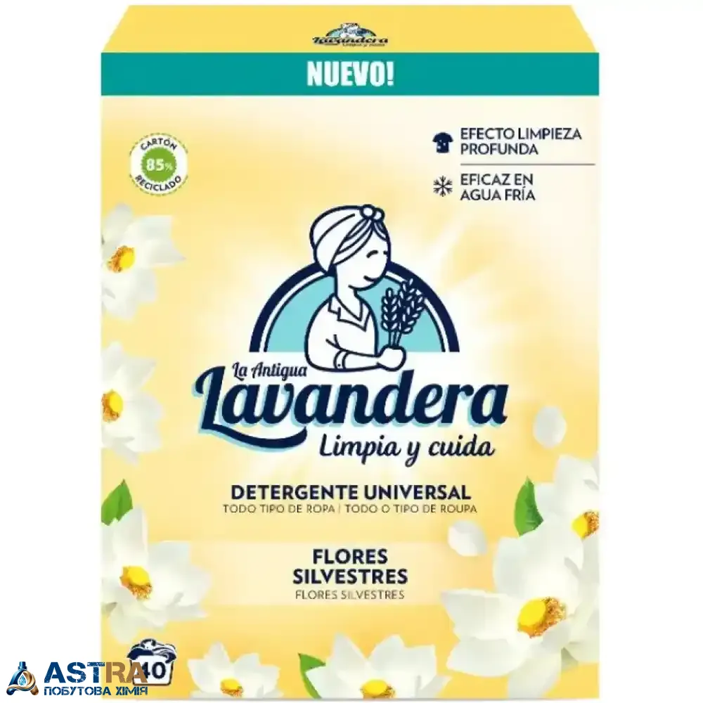 Lavandera Flores Silvestres (Природна свіжість та професійна чистота з Іспанії) — це універсальне рішення для догляду за вашим гардеробом. Порошок розроблений з використанням сучасних технологій, які роблять процес прання максимально ефективним та безпечним для всіх типів тканин.