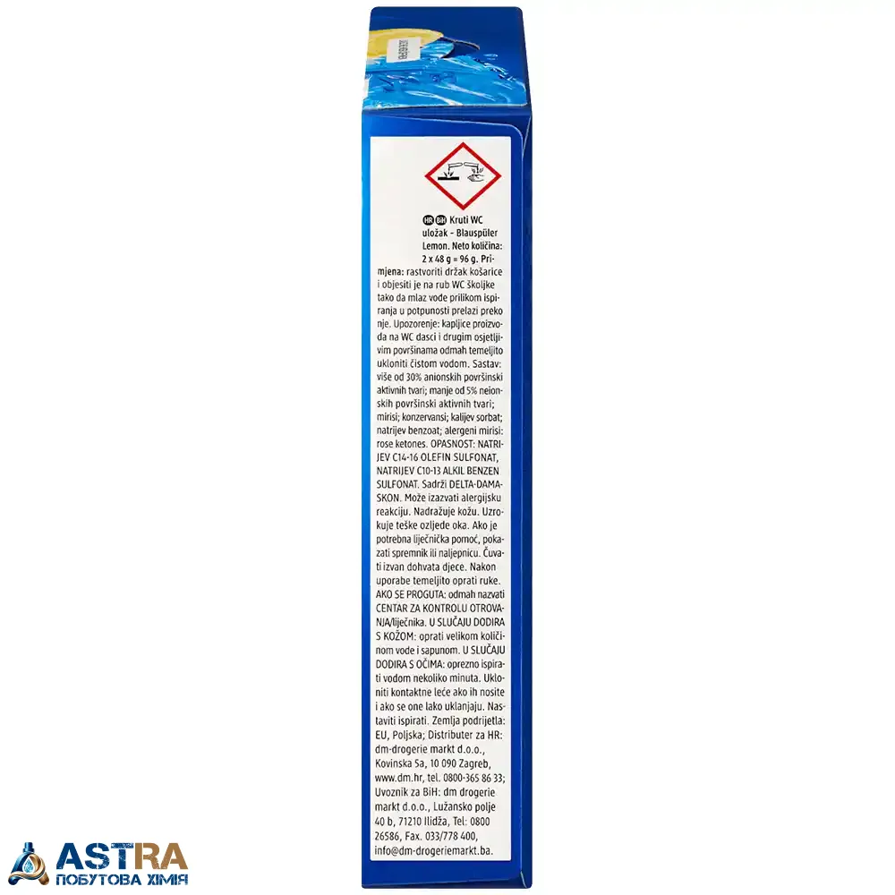 При кожному натисканні кнопки змиву Denkmit Lemon забарвлює воду в яскраво-блакитний колір, що візуально підтверджує роботу активних миючих компонентів. Завдяки вмісту соди та спеціальних ПАР, блок активно бореться з головними ворогами чистоти — вапняним нальотом та сечовим каменем, подовжуючи інтервали між генеральним прибиранням.
