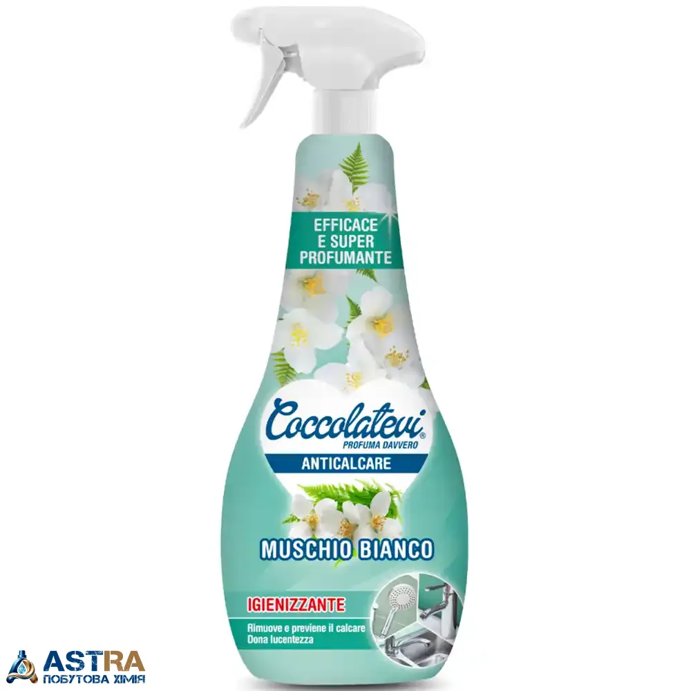 Купити засіб для видалення вапняного нальоту Coccolatevi Anticalcare Muschio Bianco - означає перетворити рутинне чищення сантехніки на швидкий та приємний ритуал. Завдяки інноваційній формулі на основі органічних кислот, цей засіб за лічені секунди розчиняє навіть стійкий вапняний наліт, залишки мила та водяний камінь на змішувачах, душових лійках, раковинах та керамічних поверхнях. Ви отримуєте не просто чистоту, а сяючий блиск без розводів і плям, який одразу змінює вигляд ванної кімнати або кухні.