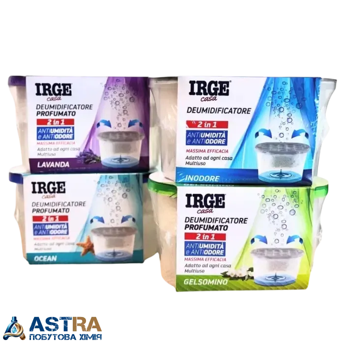 Замовляйте оригінальний вологопоглинач та нейтралізатор запаху IRGE в інтернет-магазині ASTRA. Ми гарантуємо якість італійської продукції від офіційного імпортера, швидку відправку Новою Поштою з Дніпра та зручні умови оплати — карткою онлайн або при отриманні.